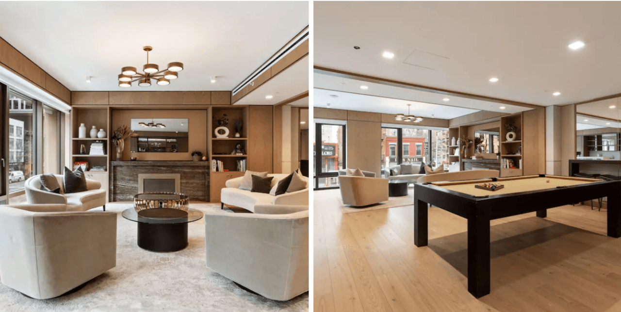 "The unit opens to a foyer that leads to a dining room and a living room, with 15-foot-high windows and a woodburning fireplace. One of the four bedrooms is also on this floor, off the living room, with striking views of the Chrysler Building. An eat-in chef’s kitchen is on this floor, as well."