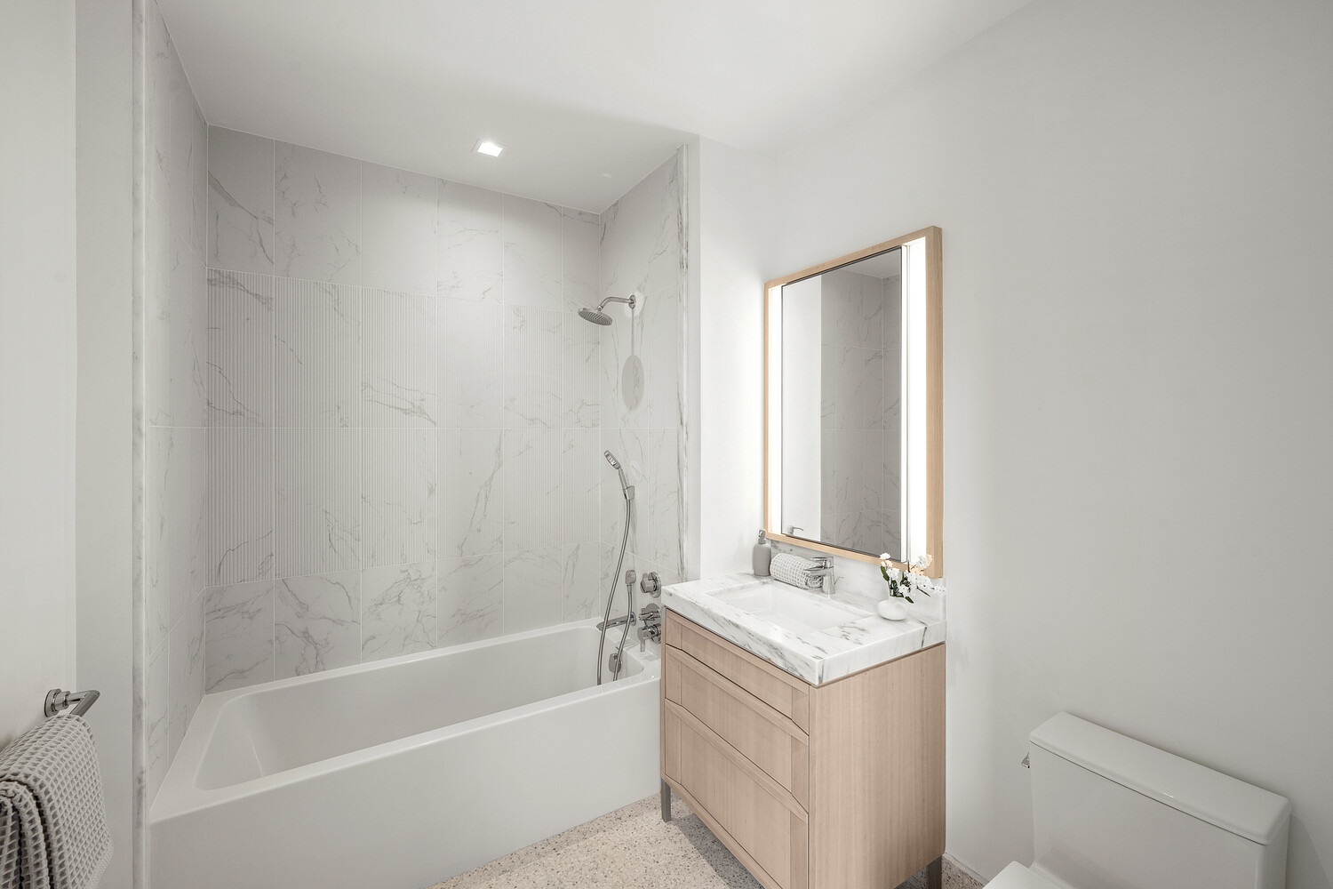 The building's curated amenities focus on the necessities to enhance daily life including a 24-hour attended lobby with cold storage, beautifully landscaped rooftop terrace, fitness studio with The Mirror and Technogym equipment, children's playroom, pet spa, bike storage and private storage available for purchase.