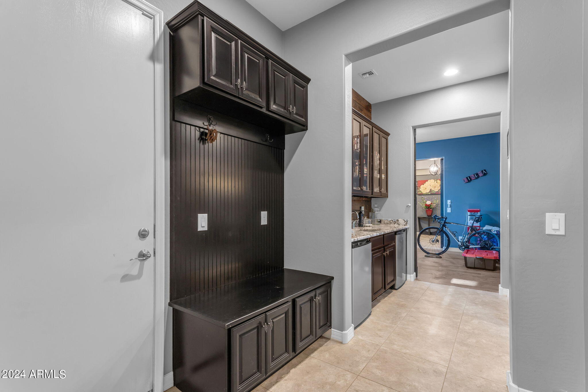 Just minutes from all Queen Creek has to offer is this amazing home--a stunning five-bedroom, four-and-a-half-bath retreat that's more than just a place to live; it's a lifestyle.'' Inside, you'll find an open floor plan that's made for both everyday living and entertaining. The heart of the home is the gourmet kitchen with an oversized island, surrounded by granite countertops, double ovens, and sleek stainless steel appliances. And with a walk-in pantry, there's no shortage of storage space. There is also a media room with barn doors to the custom wet bar. This space is designed for ultimate relaxation and fun. There is also a beautiful primary bedroom suite. It's not just a bedroomit's your personal sanctuary, complete with a cozy seating area, his-and-hers closets, and a spa-like bathroom with a convenient walkthrough to the laundry room.