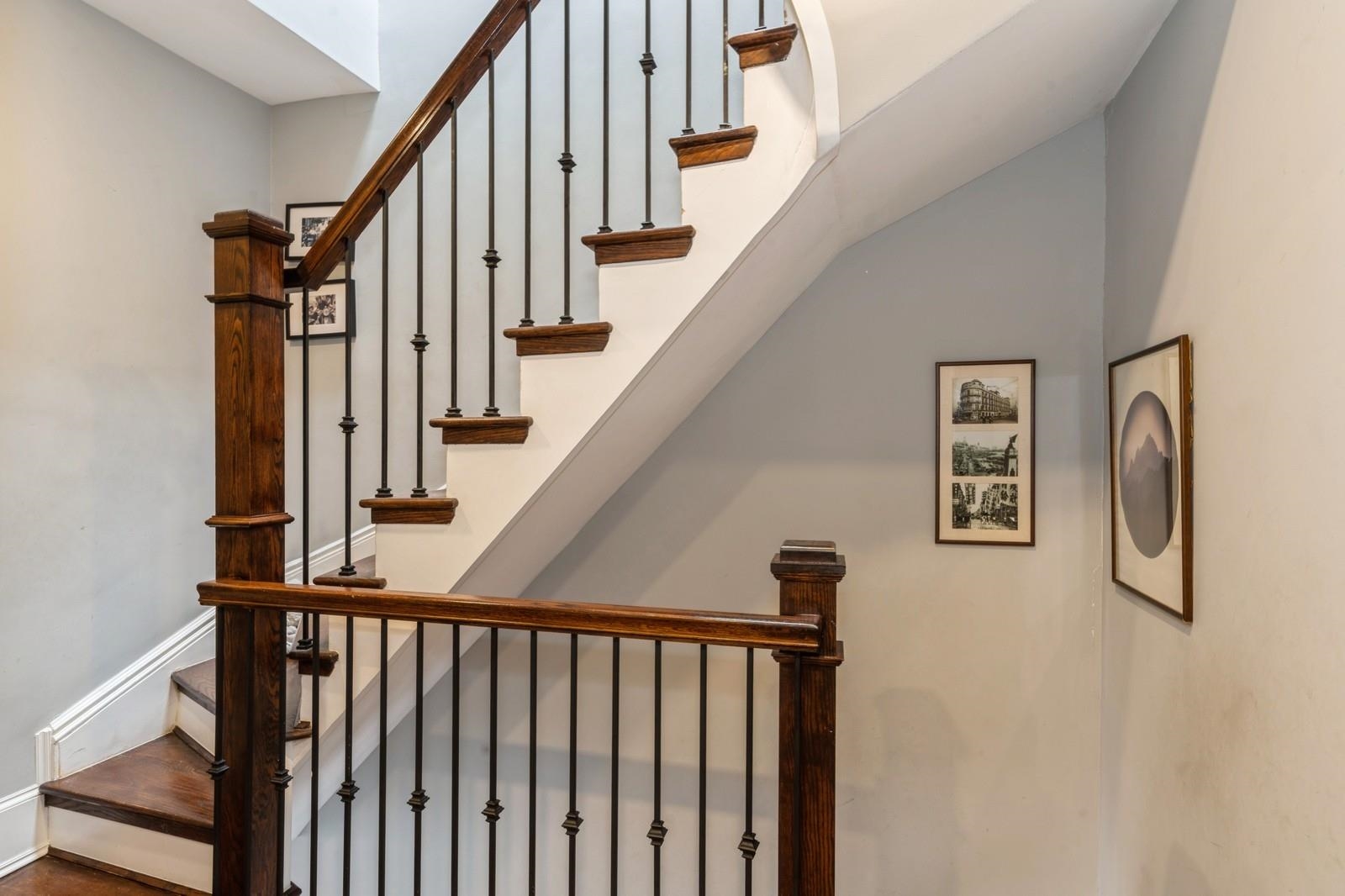 Tucked away on a tranquil, tree-lined street in the heart of downtown Jersey City, this elegant and expansive townhome offers a rare blend of classic charm and modern luxury. Spanning five beautifully curated levels, this legal two-family residence currently lives as a grand single-family home, delivering an abundance of flexible living space and refined style. On the garden level, experience seamless indoor-outdoor living with dual lounge areas accented by exposed brick and a dramatic wall of glass that opens to a serene, landscaped backyard and covered patio--ideal for entertaining or quiet reflection. The parlor floor showcases soaring ceilings, stunning original glass-inlaid doors, and a designer chef's kitchen outfitted with top-tier appliances by Viking, Miele, and Fisher & Paykel. A striking 10-foot island with Caesarstone quartz countertops anchors the open-concept space, which flows effortlessly into a light-filled living and dining area with floor-to-ceiling windows and access to a custom steel deck overlooking the backyard. Retreat to the third-floor primary suite, a serene haven complete with two custom walk-in closets, a luxurious en-suite bathroom featuring dual sinks, Calacatta Nuvo quartz, and a spa-like glass rain shower. The top floor offers two generous bedrooms, a flexible office or nursery, a full bathroom with soaking tub, laundry, and skylights that bathe the space in natural light. Guests will feel right at home in the private lower-level suite, featuring a fourth bedroom, full bath, second laundry area, and tasteful finishes throughout. Additional highlights include four-zone central HVAC, integrated surround sound, recessed lighting, washer/dryer, and hardwood floors throughout. This thoughtfully designed home offers every modern convenience in an unbeatable location--just minutes from the PATH, top-rated schools, dining, shopping, and the vibrant community of Hamilton Park.