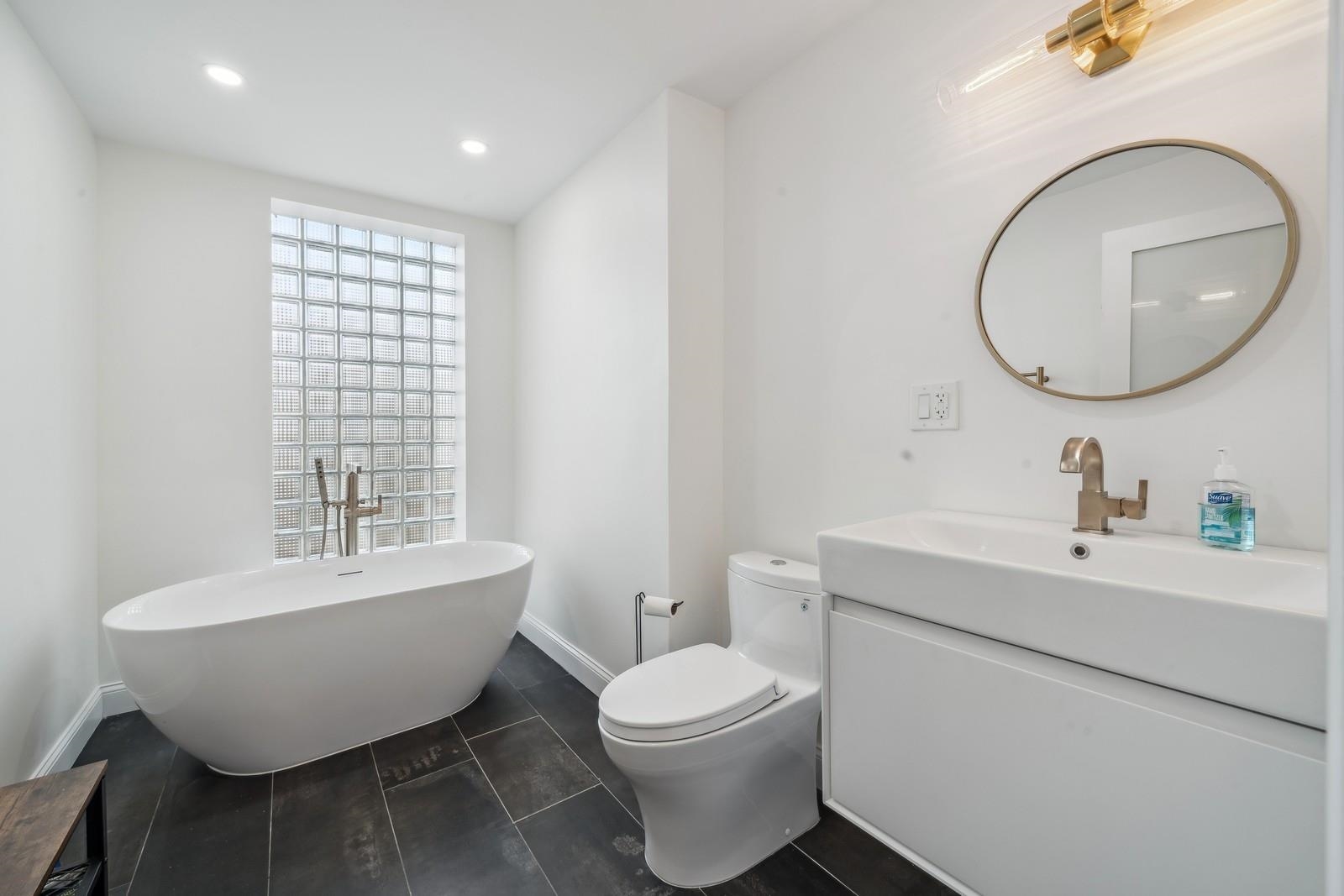 Situated in the Van Vorst Neighborhood of Downtown, JC, blocks away from Van Vorst Park, this beautiful single-family home provides the ultimate level of convenience and overwhelming charm to its new owners. This quaint residential block on Varick Street features rows of brownstone homes situated on a tree-lined street with a panoramic view of lovely homes and nature, for that city like tight-knit community feel. Step inside your home to unveil the great space and unlimited options within. On the garden level, walk into the expansive entertainment area, perfect for relaxation or for entertaining guests. Enjoy your wet-bar area with a beautiful wall of navy cabinetry, and quartz countertop and backsplash. A full wet room bathroom directly off the entertainment area featuring a waterfall shower head and floating vanity complete the space. Glass doors enclose a generously sized bedroom, and an exposed brick archway leads into the tucked laundry room and out onto the back garden. Leading up the stairs onto the parlor level, you have a full floor dedicated to the open concept living area, dream kitchen and powder room. The space glows with charm featuring beautiful detailing such as all new hardwood flooring throughout, large windows which allow the natural light to seep in from one end of the home to the other, & designer light fixtures. Cook to your heart's delight in your expansive Walnut kitchen with Thermador appliances, including 8-burner stove, and gorgeous white Quartz countertops and backsplash. Off the kitchen, you can breathe in some fresh air outside on your deck or continue down the stairs to your Bluestone & Turf backyard. As you head back inside, the top two levels feature two bedrooms on each floor (home office and/or gym space for other ideal uses of the rooms). The fourth floor en suite is a grand space complete with more built-in shelving, a deep custom walk-in closet, and sleek primary bathroom with double sink vanity. Some other notable mentions: new plumbing to bathrooms, all closets customized with shelving, drawers and hanging space and glass sliding doors, Emtek handles throughout the home in black and gold, remote control gas fireplace in living room, laminate flooring and baseboard heating in sub-basement, two laundry areas (garden unit and third floor), garden bathroom and top floor bathrooms have heated floors, and upper bathrooms have heated towel rails. Located near the Grove St Path, and an abundance of shops and dining options are available within a short distance; a definite must see in one of Jersey City's most sought after neighborhoods.