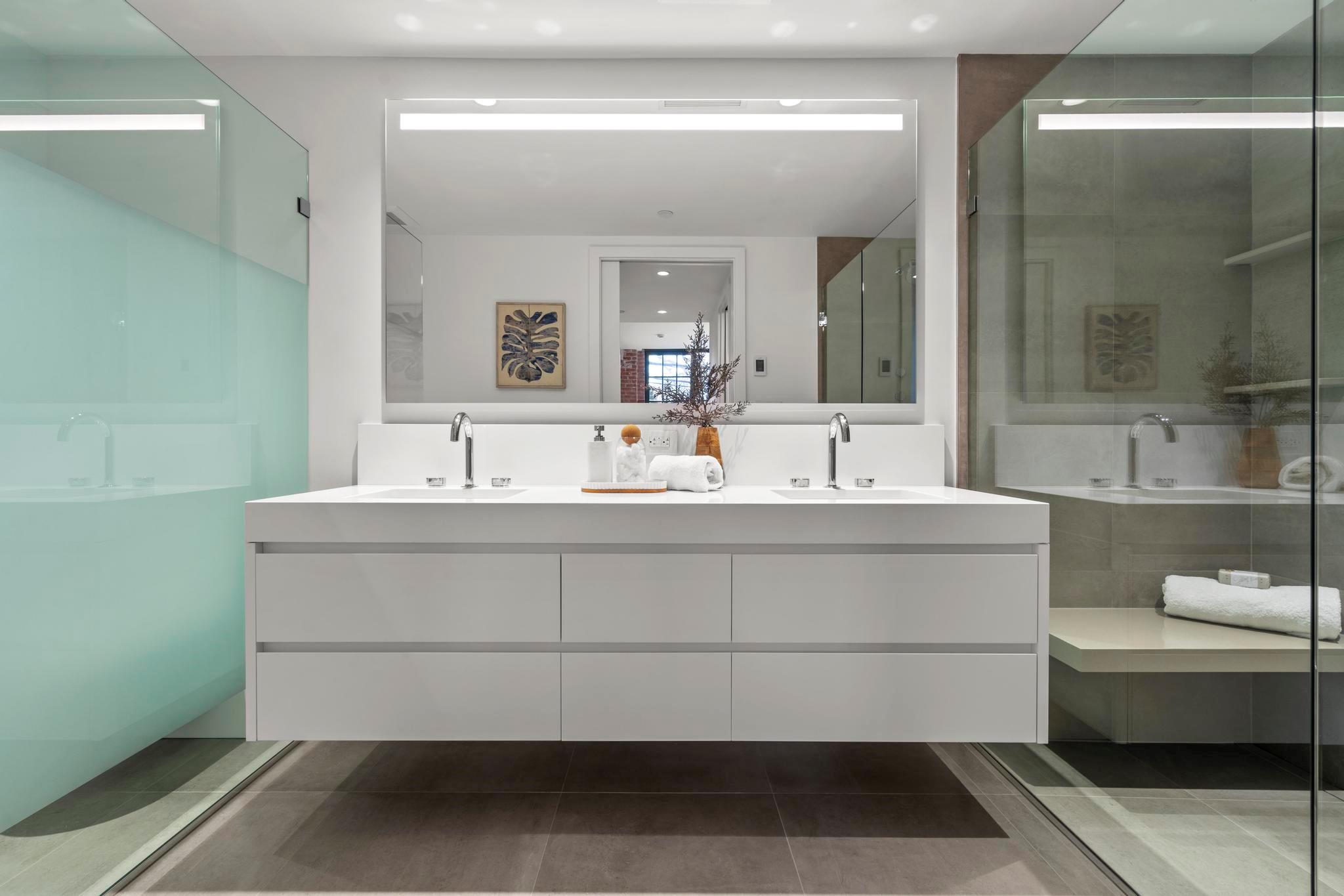 The vision for this converted historic building was inspired by European boutique hotels, and as such, these homes have been graced with sophisticated details including large waterfall edge kitchen islands, custom Poliform cabinetry, a suite of high-end appliances by Subzero and Wolf, full-size washers and dryers for your convenience, and luxurious primary bathrooms featuring radiant heated floors. Select homes are further enhanced by vaulted ceilings with skylights, linear gas fireplaces, freestanding soaking tubs, and private outdoor spaces.