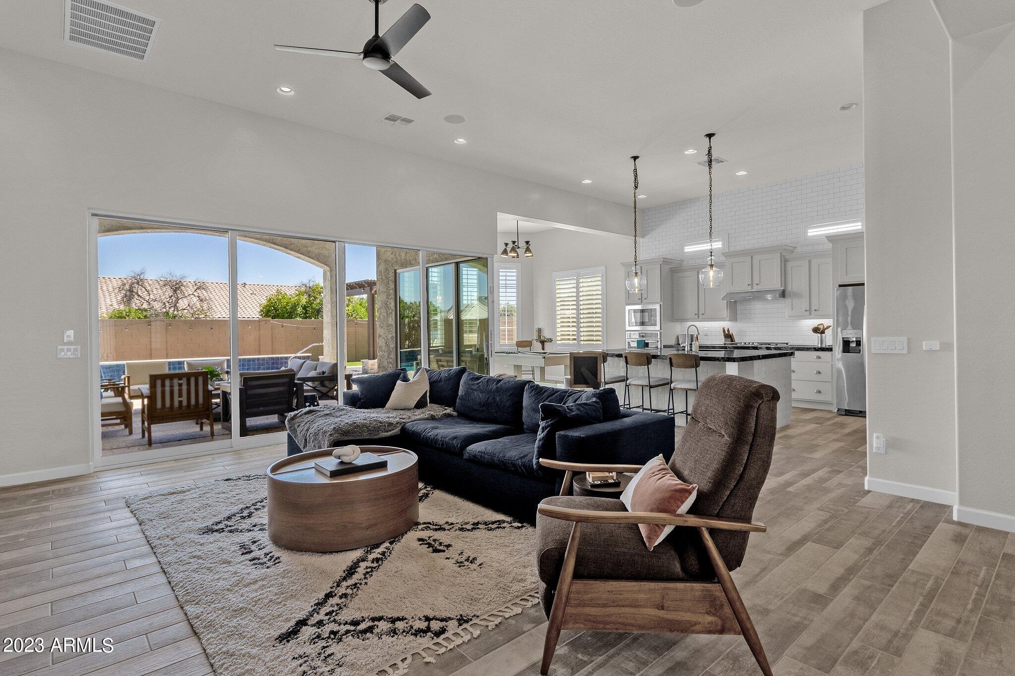 Welcome to this luxurious and spacious home, located in the gated community Estates at Valencia. Featuring 4 bedrooms, 3.5 bathrooms, private pool w/pool service, solar panels for low electricity bills, EV charger, 12' ceilings and smart home integration; this property provides the epitome of comfortable and sustainable living. The expansive open floor plan seamlessly connects the living, dining, and kitchen areas with expansive arcadia doors that fully open to an outdoor living space. Once outside, you'll enjoy a large covered patio, pool and spa, gas fire pit and covered built in BBQ. All appliances included.