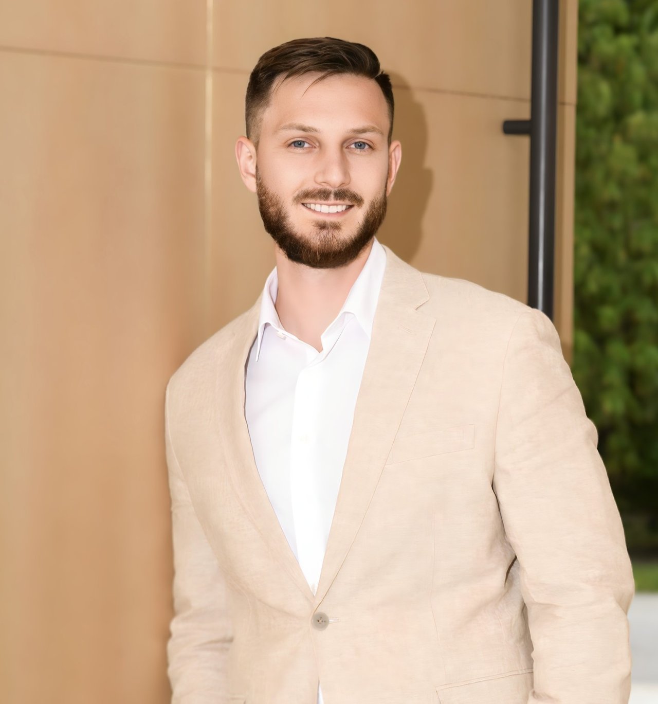 At the heart of the home is an open-concept chef's kitchen featuring exquisite quartz countertops, custom cabinetry, a herringbone backsplash, oversized island with prep sink, hidden walk-in pantry, and premium stainless steel appliances. Ideal for entertaining, the kitchen flows effortlessly into the dining area and great room, where motorized window treatments and sliding glass doors lead to a deep, covered balcony overlooking the water and resort-style pool.