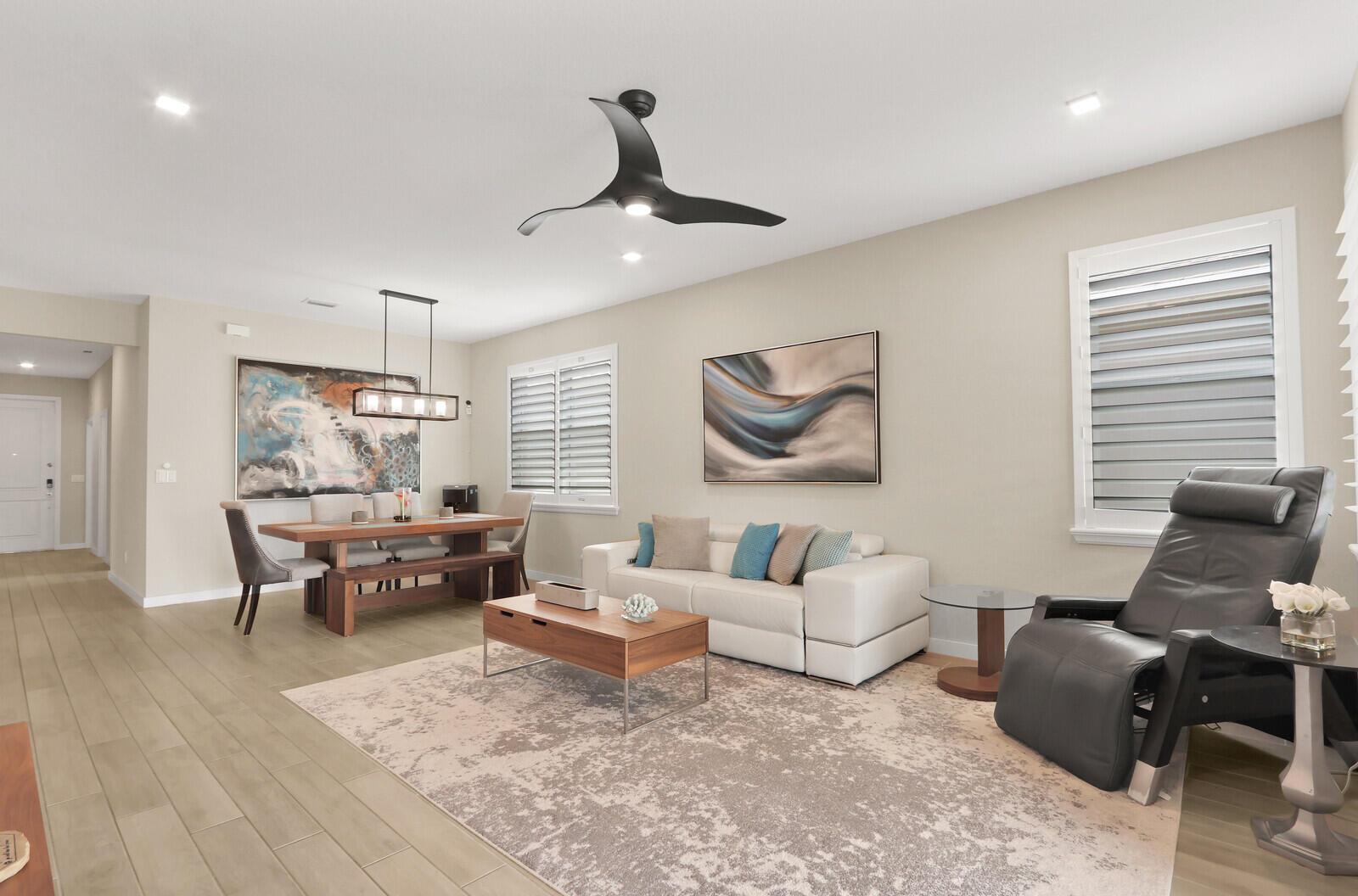 The home's pristine landscaping, both front and back, is maintained by the HOA, which also covers lawn care, fertilization, irrigation (three times a week), access to the community pool and gated entrance. The HOA fee is a very low $285 per month, offering exceptional value while covering these services, as well as insurance for the common areas. Pet-friendly, with up to 3 pets allowed, the community also permits immediate leasing with a minimum of 6 months up to 2 times per year.